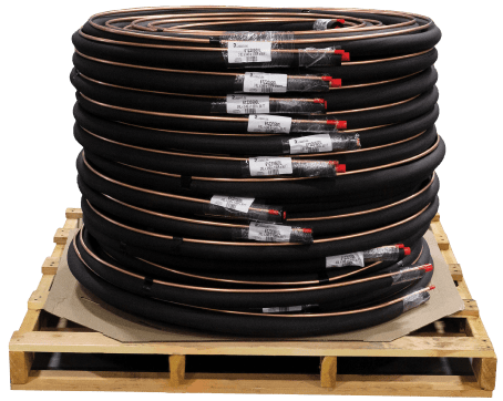Linesets, Inc Standard Line Set, Model: Streamline Standard Line Set, 7/8" Suction Line Size, 3/8" Liquid Line Size, 50' Length, 1/2" Insulation Thickness, 3.6 R-Value, Sweat/Braze, C12200 Copper (Tube), NBR/PVC (Insulation), 700 PSI (UL Recognized), -297-220°F, Black, Domestic