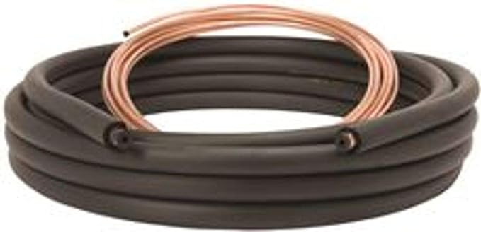 Linesets, Inc Mini Split Line Set, Model: Mini Split Line Sets, 5/8" Suction Line Size, 3/8" Liquid Line Size, 50' Length, 1" (Both Lines) Insulation Thickness, Cable, Flare, C12200 Copper (Tube), NBR/PVC (Insulation), 700 PSI (UL Recognized), Black, Domestic